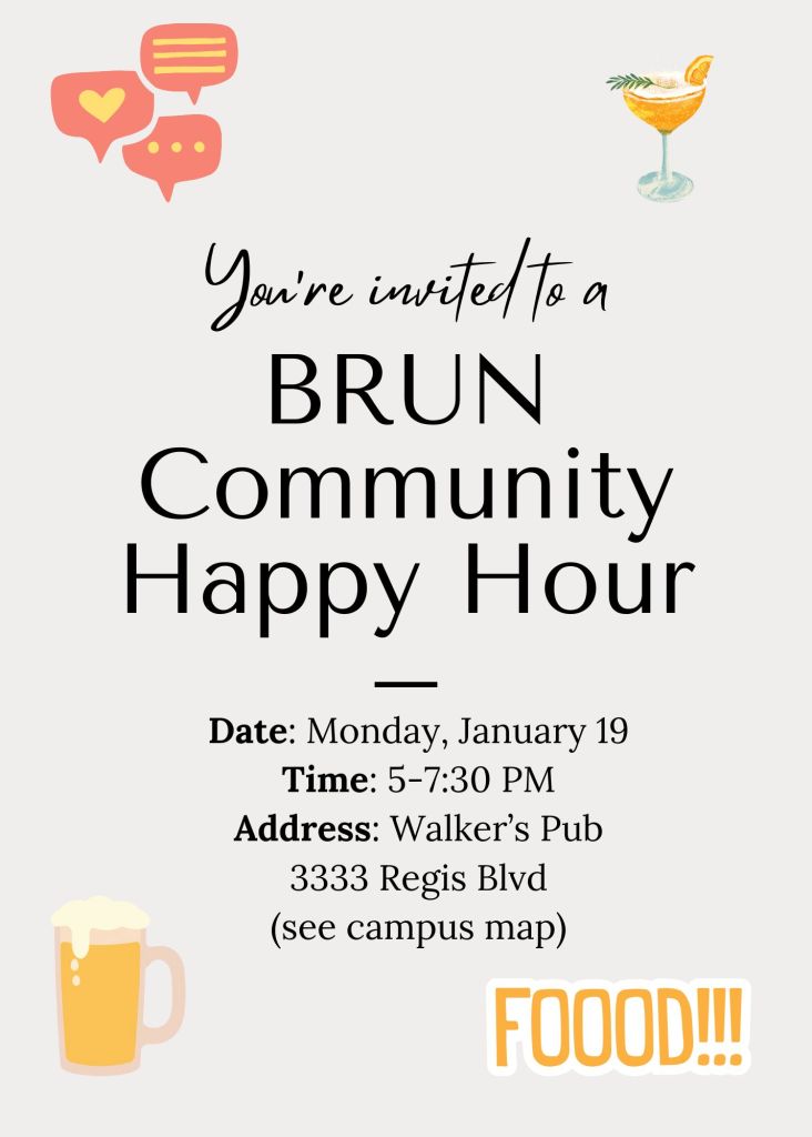 Monday, January 19, 2026: BRUN Community Happy Hour (check out the Facebook Event page; this event is organized by the BRUN Board)